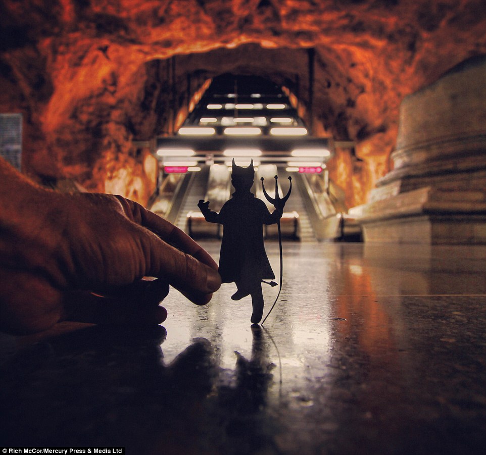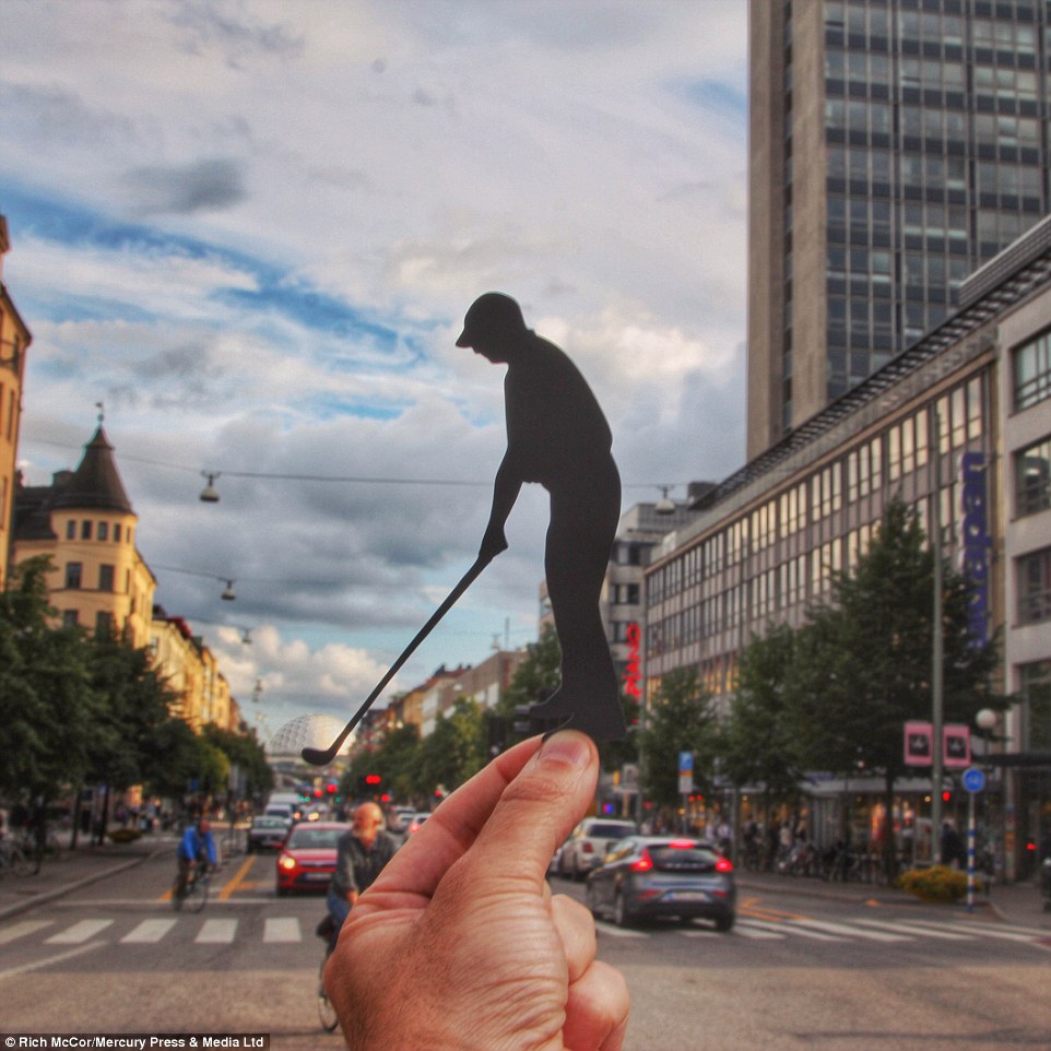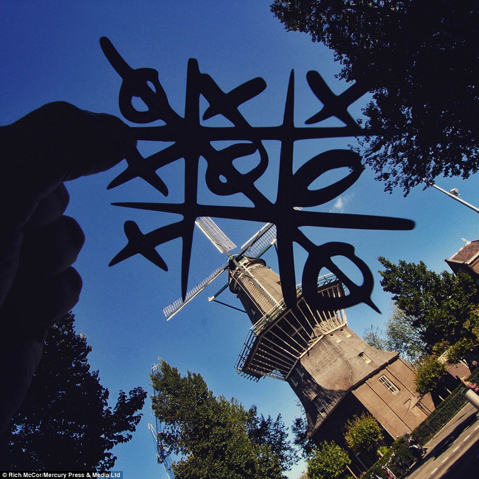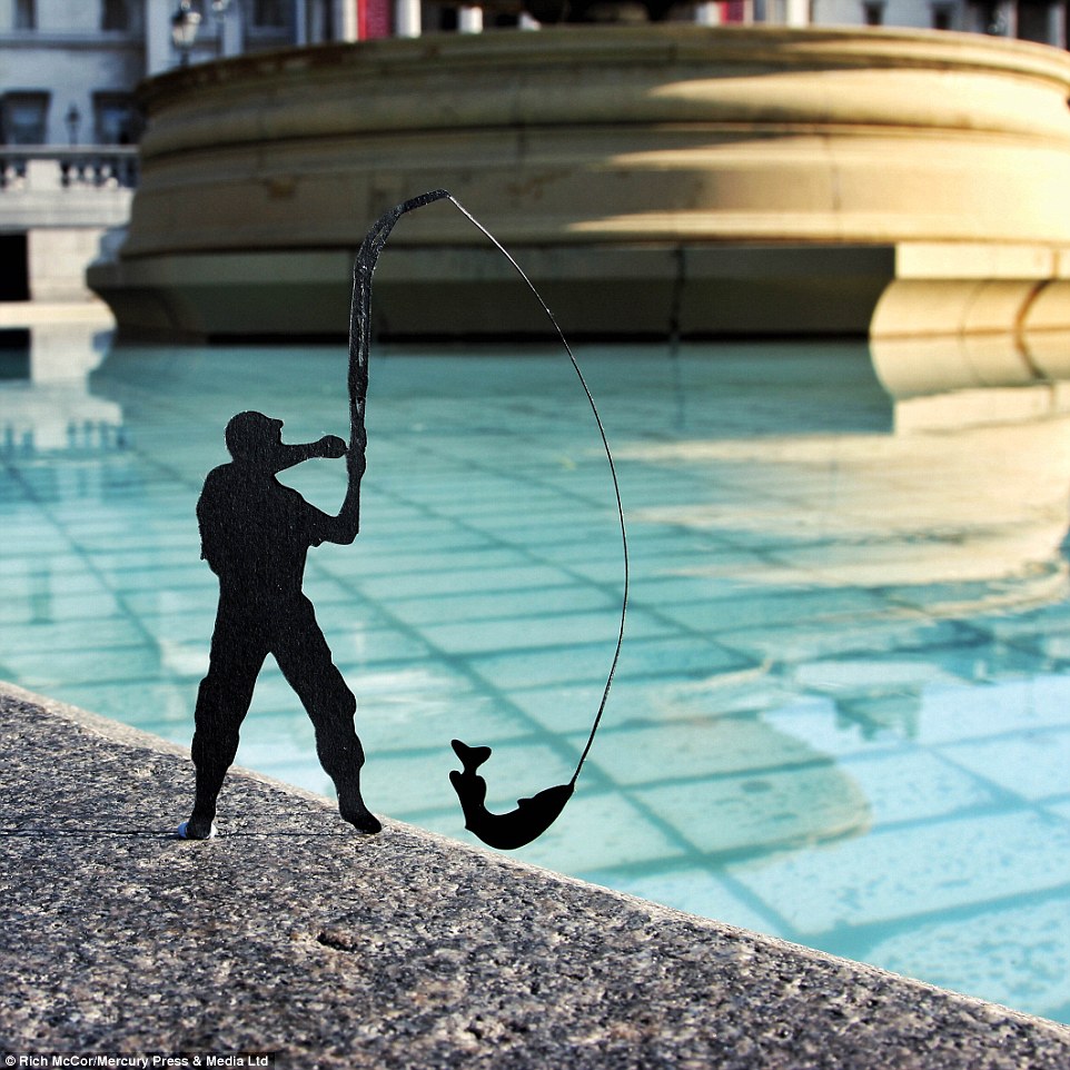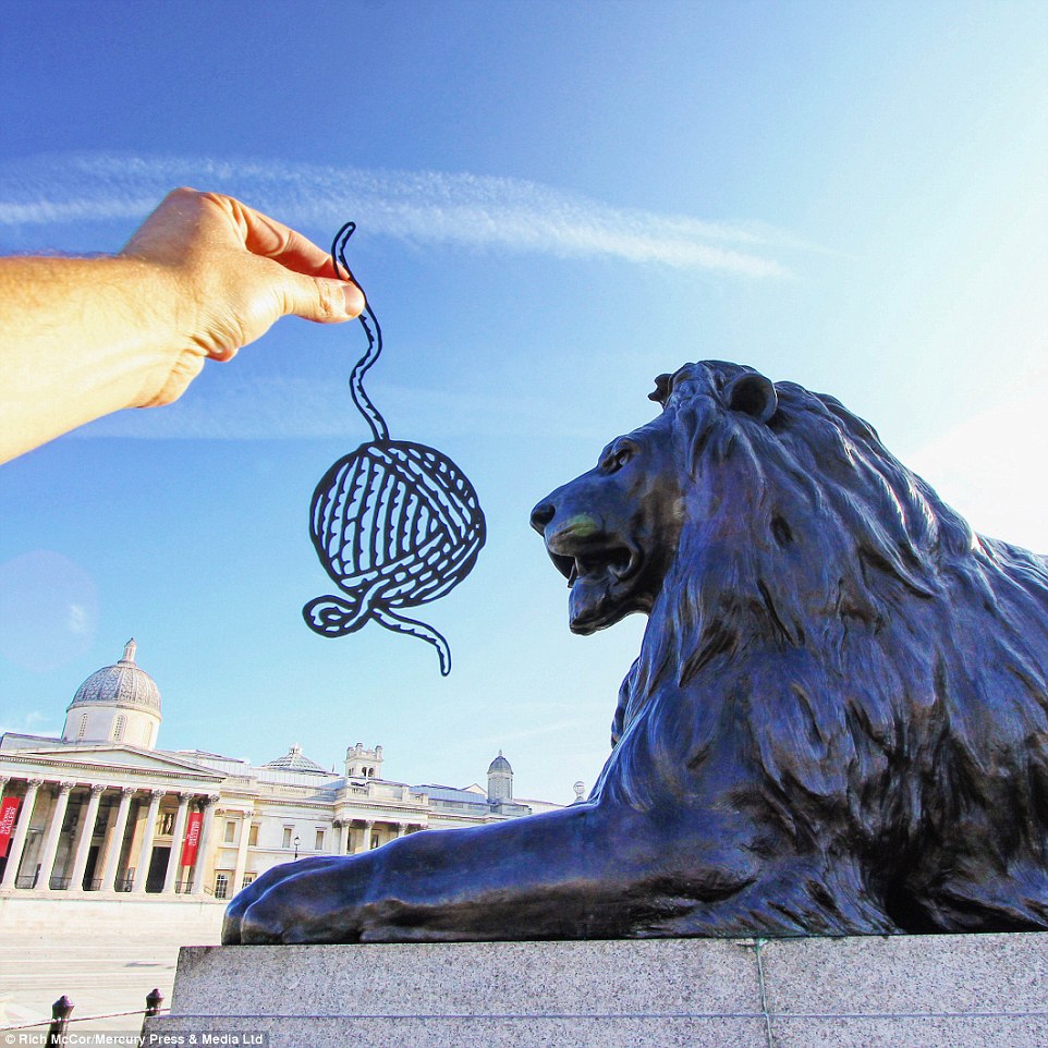 قام الفنان التشكيلي “ريتش ماكور” من لندن، والبالغ عمره 28 عاماً، بالتفاعل مع معالم لندن الشهرية بواسطة قصاصات الورق التشكيلية. إذ إن هذا الفنان الذي يعمل لحساب وكالة إبداعية، قام بتصميم أشكال مبتكرة لأجسام وقطع وأدوات من الورق ذو اللون الأسود، ودمجها مع المعالم السياحية الأكثر شهرة في العاصمة البريطانية.